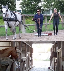 Des écuries spacieuses, chevaux et poneys logés en boxes et en stabulation libre.